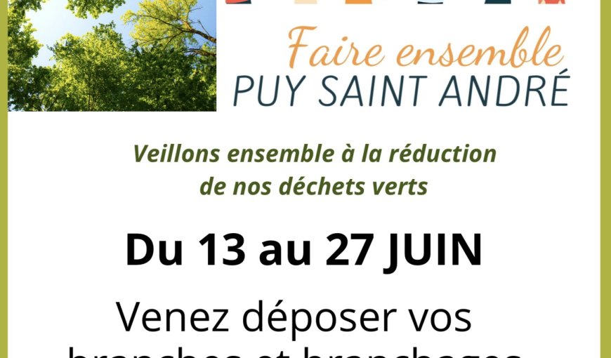 2 espaces temporaires de collecte des branches et branchages seront mis à votre disposition du 13 au 26 juin :